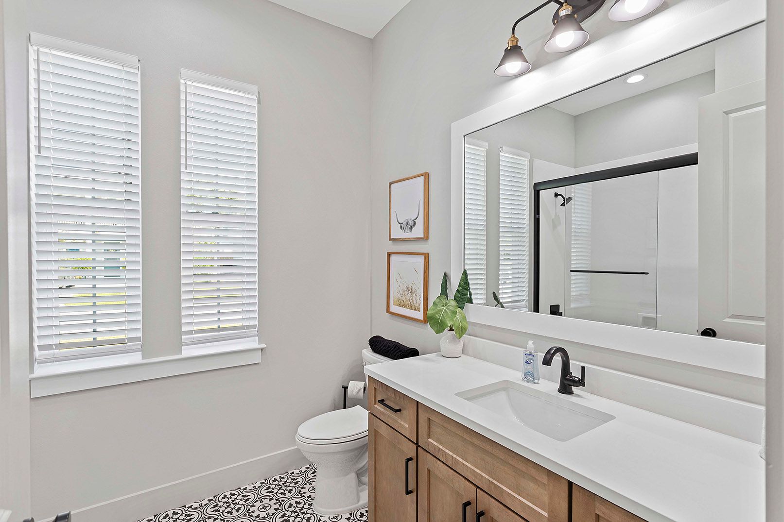 This project was a full design install to get it rental ready. The owner had a pretty specific vision for the design style of farmhouse modern. He wanted the rental to house images of cattle, to tie into the rental name of the “Bougie Buffalo.” I took that design direction and implemented it into my design choices throughout the house. The house is 8 bedrooms, 2 of which are bunk rooms. It has a game room on the 3rd floor and a coffee bar area on the second. This house was fun to install because stylistically it was different from all the other rentals I had installed throughout the year. It was fun to put together!