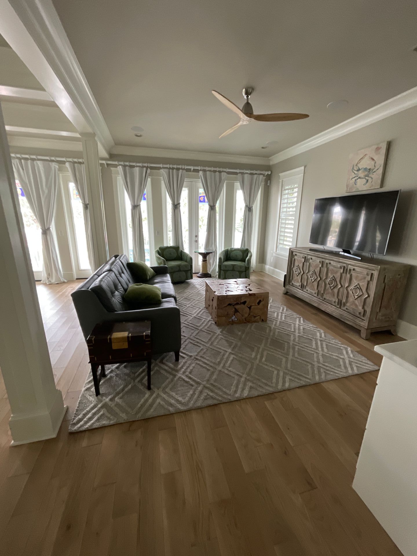 This is my biggest home to date! This was one large house with a carriage house on the side. The main house was three stories. It has 9 bedrooms and 10 bathrooms. The carriage house has one large game room, 2 bedrooms and 2 bathrooms, a full kitchen and living area. This house is absolutely beautiful! The owner’s of this large rental home hired me to do the full design and install. The design style we settled on was more of a traditional coastal look. I worked within the decided budget of the owners to supply everything needed to get the house ready for renters. I love the way this house turned out.