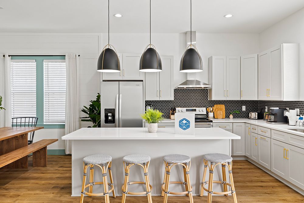 This project was a full design install to get it rental ready. The owner had a pretty specific vision for the design style of farmhouse modern. He wanted the rental to house images of cattle, to tie into the rental name of the “Bougie Buffalo.” I took that design direction and implemented it into my design choices throughout the house. The house is 8 bedrooms, 2 of which are bunk rooms. It has a game room on the 3rd floor and a coffee bar area on the second. This house was fun to install because stylistically it was different from all the other rentals I had installed throughout the year. It was fun to put together!
